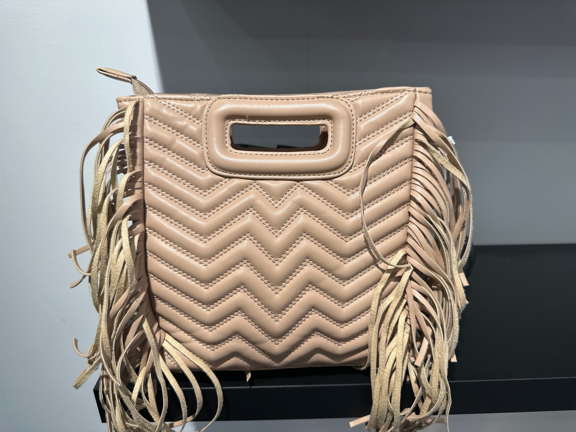 BOLSO TIPO BANDOLERA MINI CON FLECOS EN LOS LADOS EN COLOR BEIS