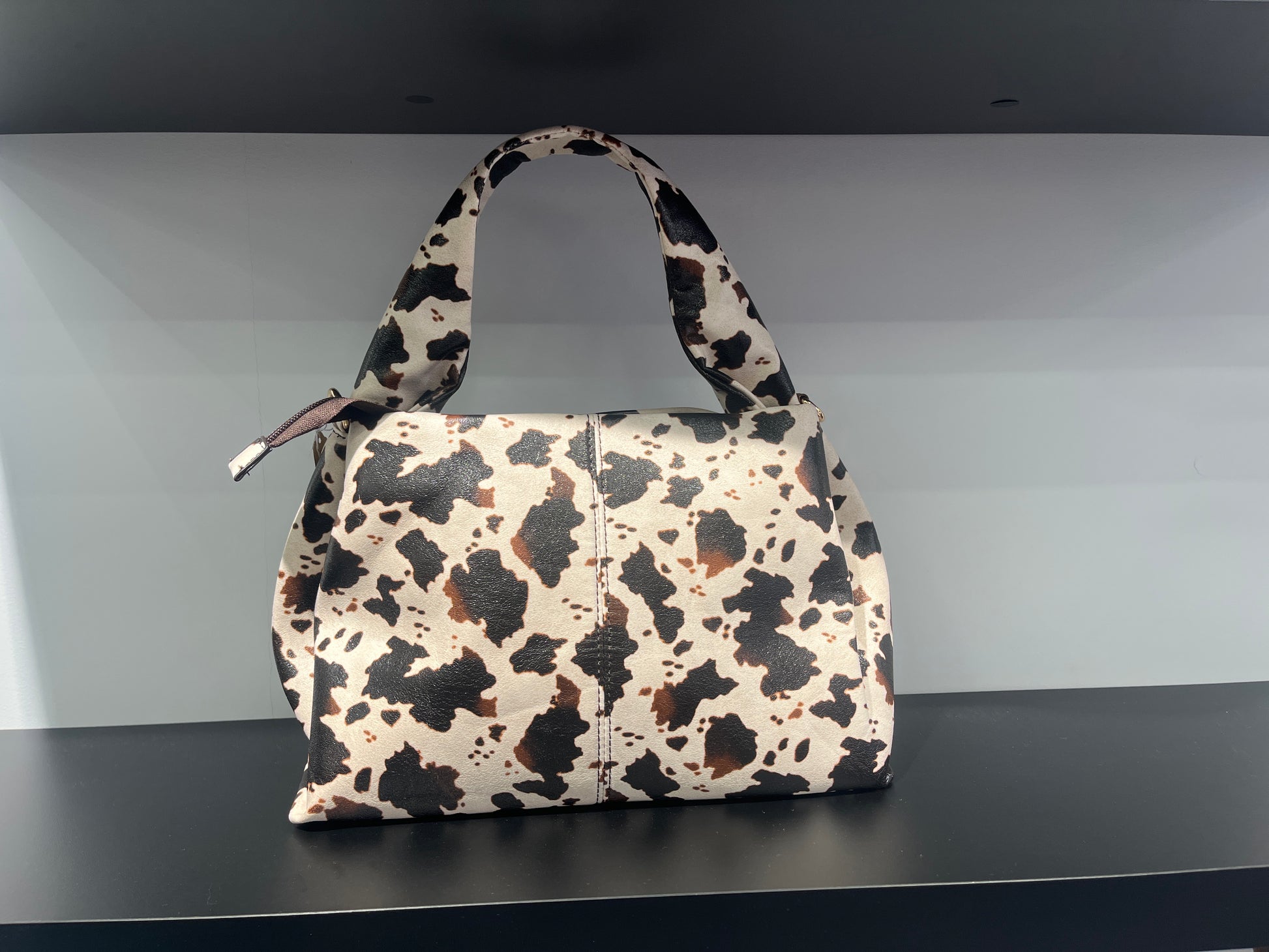 BOLO POLIPIEL EN ESTAMPADO DE VACA MARRON OSCURRO Y BEIS CLARO TAMAÑO MEDIANO-PEQUEÑO
