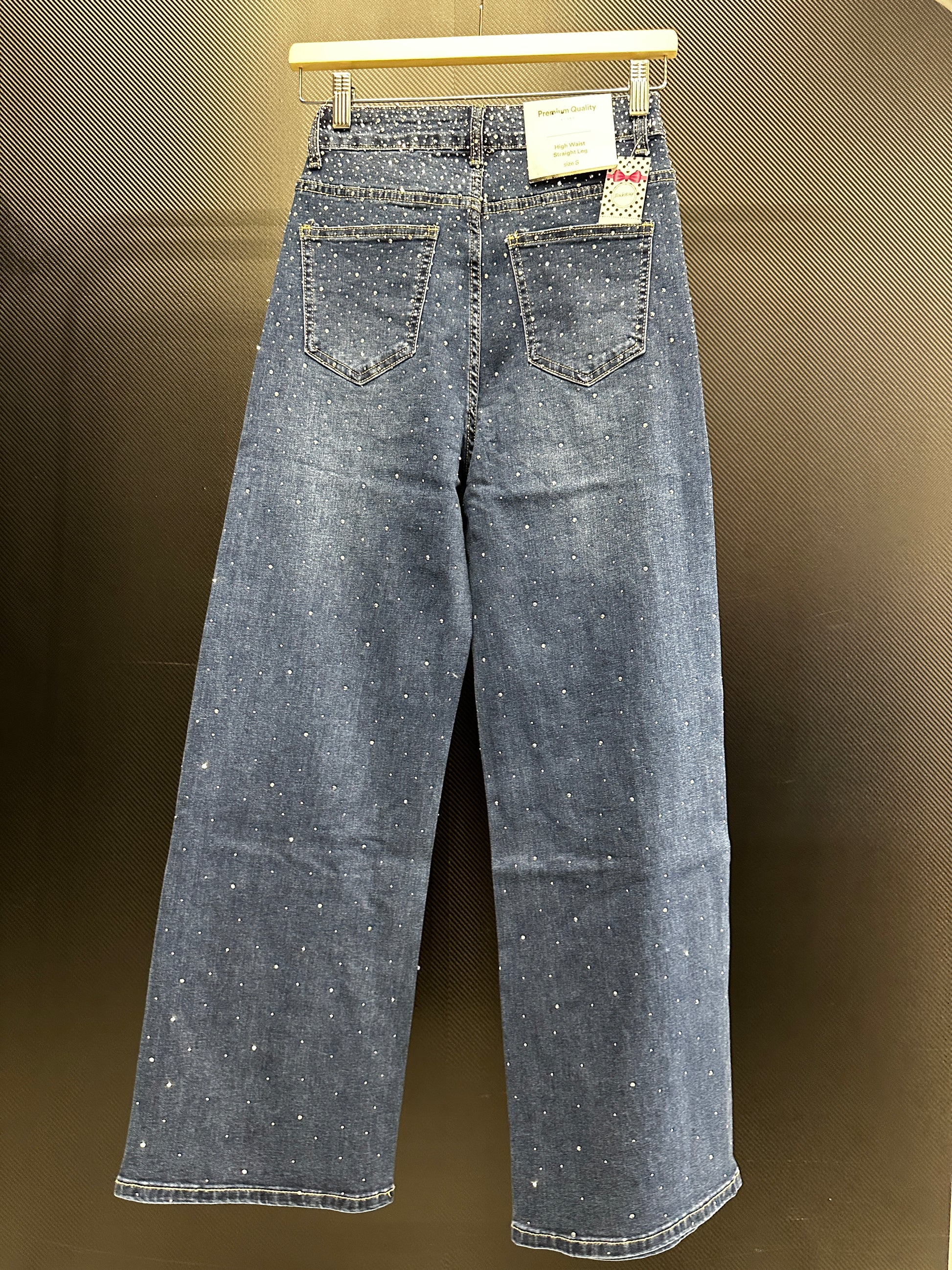 Pantalón vaquero de brillos con la pata recta y botones en el lado
